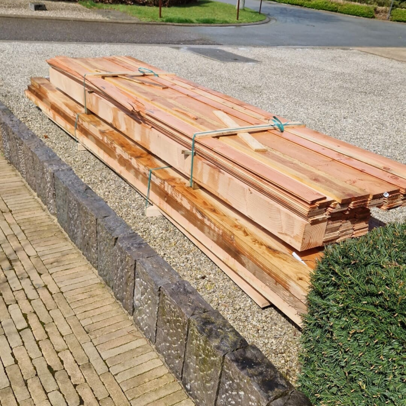Alles werd vooraan op de inrit geleverd en werd dan met de hand, balk voor balk naar de tuin gebracht. Ik heb het geweten en zo elk stukje voor de eerste keer in mijn handen gehad.